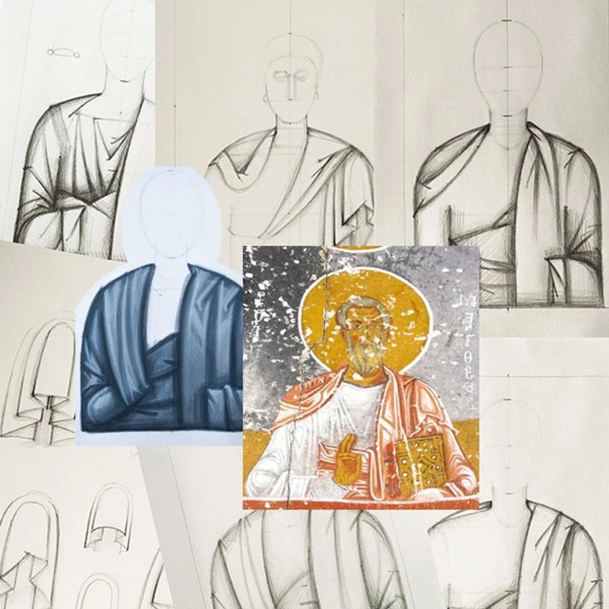 Iconography Drawing course Half Figure. Garments focuses on the fundamental structures and forms of classical garments in iconography.